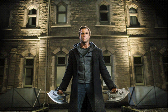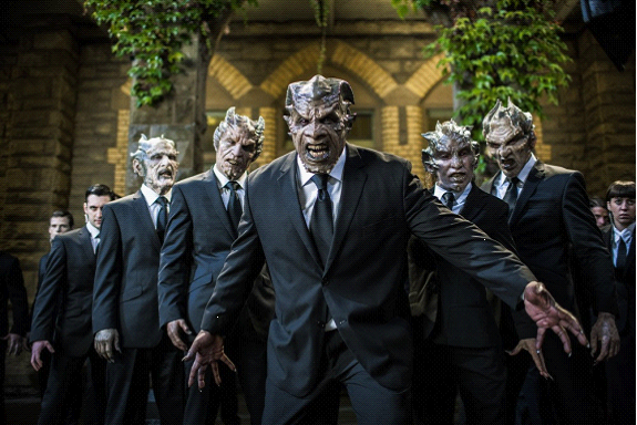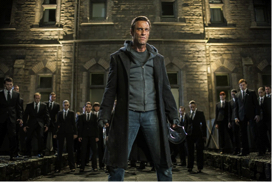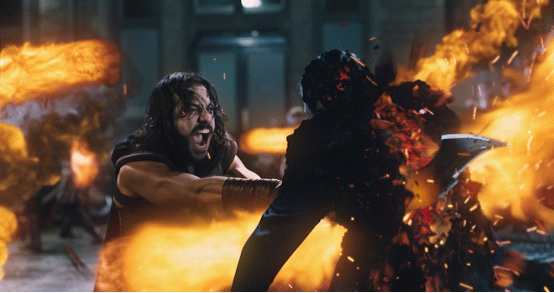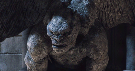 影片的第一场大战发生在坟地。本以为这是一场弗兰肯斯坦和几个恶魔的对决。没想到最令人惊喜的情况出现了——大天使出场!起初你以为那只是俩长着大翅膀、会飞的石头人,其实人家是大天使,打架很帅,变身更帅。