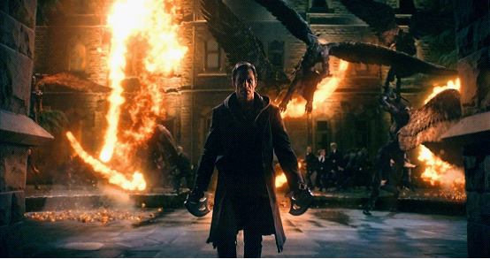 从天到地,从地到天……这是本片特效打斗场面的第一次高潮。无数的恶魔前来冲击城市中那座最美丽庄严的哥特式大教堂,于是上演了一场满天大天使和遍地恶魔的群殴大戏。