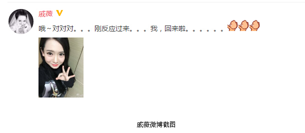 腾讯娱乐讯 4月8日,戚薇晒出一张自拍,配文称:“哦~对对对。。。刚反应过来。。。我,回来啦。。。。。。”