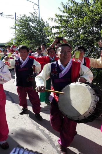离开光东村时,身着鲜艳民族服装的村民们排起长长队伍,打起手鼓、敲起长鼓,载歌载舞,表达喜悦之情。