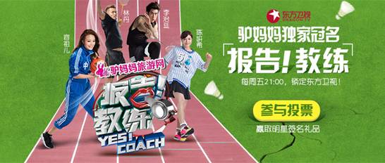 作为《报告!教练》独家冠名商,驴妈妈旅游网除了在节目播出中进行品牌形象展示之外,还将通过《报告!教练》将与消费者开启全方位互动。