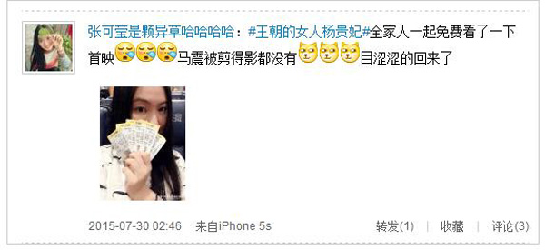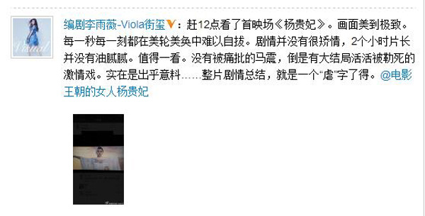 中娱网讯 www.yule.com.cn 7月30日凌晨,电影《王朝的女人·杨贵妃》全国公映,很多网友特地零点买票去观影。据零点观影的网友透露,之前备受争议的“马震”戏份已经被删掉了。据新浪娱乐消息,《杨贵妃》宣传方表示“马震”戏份确实被删除了,不过扯衣服的戏份还留着。
