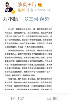 王迅发道歉声明