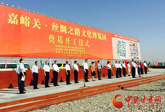 中国甘肃网8月25日讯 (本网记者 刘姗) 25日上午,总投资31亿元的丝绸之路文化博览园在素有“天下第一雄关”之称的嘉峪关正式开工建设。据悉,该项目是由嘉峪关市政府与深圳华强集团、甘肃省广电网络股份有限公司共同建设,项目建成后,预计年接待游客300万人,直接、间接带动就业8000人左右,年收入6亿元。省委常委、省委宣传部部长连辑宣布项目开工并为项目挥锹奠基。