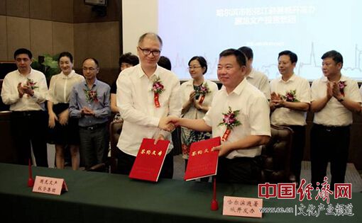 8月24日,哈尔滨市人民政府与国龙文产投资集团举行签约仪式。国龙文产投资集团将在哈尔滨市松花江避暑城投资近百亿,启动建设北国梦工厂产业园项目。哈尔滨市委副书记、市长宋希斌,中国文化产业商会副会长、国龙文产投资集团董事长陆兴东等出席签约仪式。