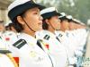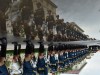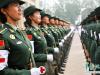 仪仗队女兵正在训练。微笑也是她们的一个训练内容。