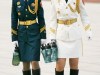 仪仗队女兵正在训练。所有的配饰都在同一条线上。