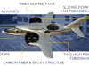 本图展示了起降状态,三具函道风扇同时运转的状态。由于机身也有一具风扇,所以机身中后部无法布置客舱。但影响不大,毕竟Trifan600定位就是一种超轻型公务机。