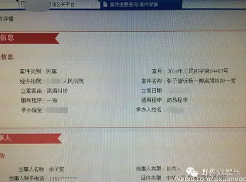 这条微博里另一张配图是和杨一柳离婚诉讼立案截图