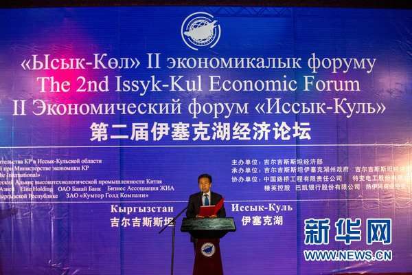 8月26日,第二届伊塞克湖经济论坛在吉尔吉斯斯坦旅游胜地伊塞克湖举行,吉第一副总理萨尔帕舍夫在开幕式上代读吉总统阿坦巴耶夫贺信时表示,吉尔吉斯斯坦今年已正式加入欧亚经济联盟,并将更加积极推动该联盟与中国倡导的丝绸之路经济带的对接。新华社发