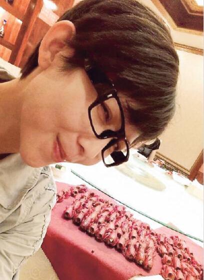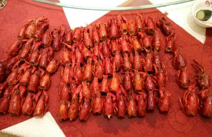 前晚蔡少芬深夜“放毒”在微博上传食物照片,桌上是排列整齐的小龙虾虾头,她与“虾头阵”自拍时一副得意的样子,又写道:“合肥的小龙虾!77支小兵,我又战胜你们了!”