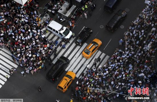 当地时间2015年7月22日,美国纽约,民众在时报广场游行,抗议与伊朗达成的核协议。图为数千民众拥挤在纽约第七大道42街,抗议伊朗核协议。