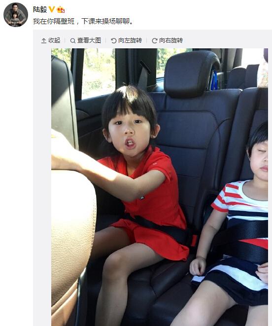 腾讯娱乐讯 9月1日,陆毅晒出自己女儿的一张照片,他写道“我在你隔壁班,下课来操场聊聊。”照片中,贝儿身穿一件红色的连衣裙,面对镜头做出搞怪的模样,虽然开学了,但看似心情很不错。身旁贝儿的妹妹靠在椅背上闭着眼睛,似乎是睡着了。