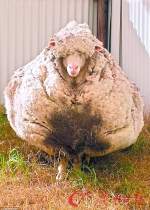 澳大利亚首都堪培拉一家动物保护组织负责人塔米·芬·丹杰说,人们在堪培拉北郊发现这只名叫“克里斯”的羊,随后从它身上剪掉40.2公斤的羊毛,这才令它重新走得动路。