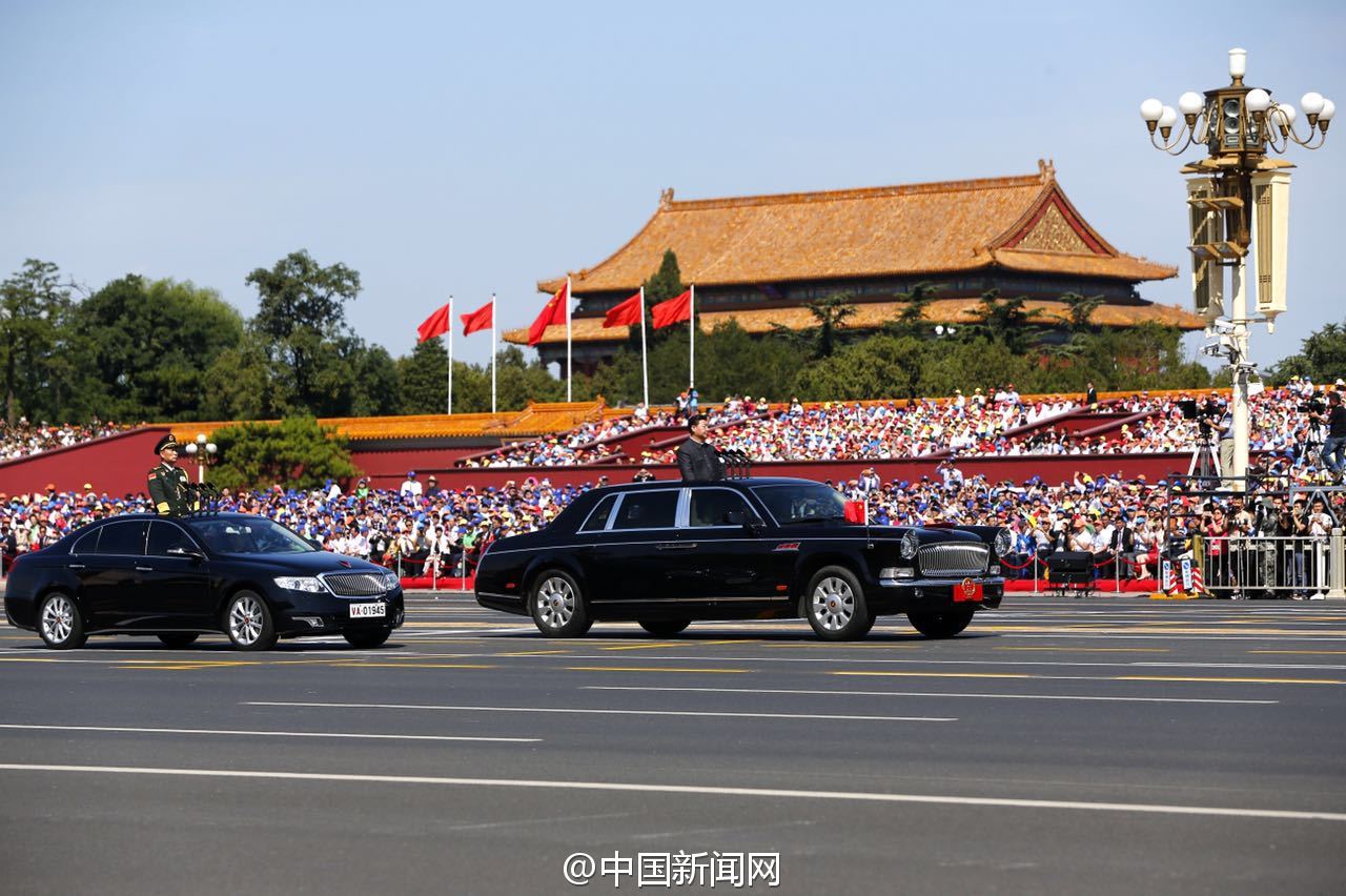9月3日,纪念中国人民抗日战争暨世界反法西斯战争胜利70周年大会在北京天安门广场隆重举行。这是中共中央总书记、国家主席、中央军委主席习近平检阅受阅部队。 新华社记者李学仁摄