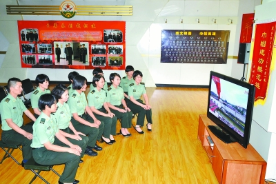 9月3日,兰州军区某通信团长话连官兵认真收看中国人民抗日战争暨世界反法西斯战争胜利70周年纪念大会和阅兵式。通讯员肖飞
