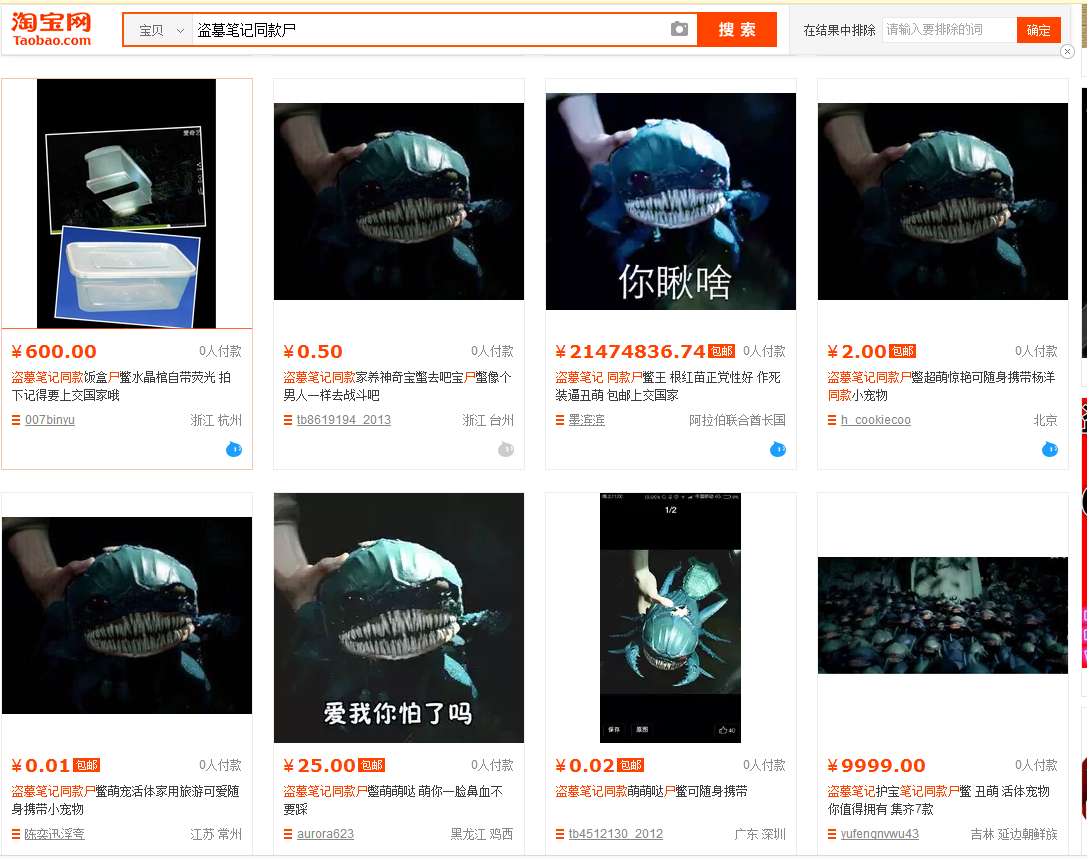 淘宝果然神速,第一集刚播完,尸鳖就上架了,家养,随身携带,不管是让你出血还是萌你一脸血,都值得拥有,爱我你怕了吗