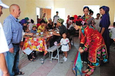 下午两点多钟,参加婚礼的人陆续散去,列纳特的大伯说,按照回族婚礼习俗,第二天,新娘阿谢拉要在公婆和男方亲戚面前展示自己下厨做事的才能,第三天,新郎列纳特要准备礼品陪同新娘回门,看望岳父母及亲属。除此以外,新娘家亲戚还要一家挨一家地请新郎、新娘吃饭,并给新娘回赠礼物。而回门的当晚,新郎要赶回家中,新娘一般要在娘家住上三五天或一星期后再由娘家人送回家或新郎自己来接回家。