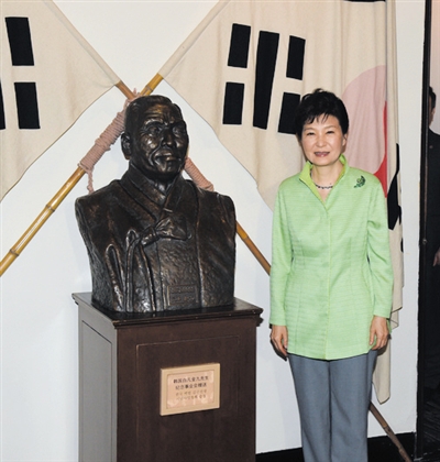 据韩国大使馆微博消息,韩国总统朴槿惠4日访问上海大韩民国临时政府旧址,出席旧址重新开放仪式。在“大韩民国临时政府旧址”展馆留言册上,朴槿惠题词:“继承先烈爱国精神,实现半岛和平统一。”