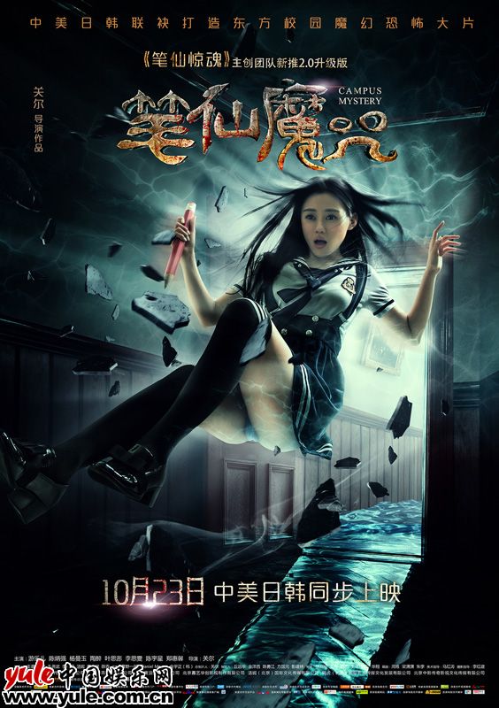 由知名导演关尔执导、资深媒体人兼编剧徐高栋等策划的超级惊悚大片《笔仙魔咒》今日发布两款体现“魔咒”降临的恐怖海报。宋朵朵一行四人在医学实验楼探险之时,已经将魔咒招致身旁,孤岛旅行时,他们在笔仙游戏中问前世,却使得游戏失控。招来的笔仙遂成为诡异游魂,带着恶咒缠住他们,危机重重,一次惊险刺激的“鬼玩人”游戏即将拉开序幕。白妮在教室走廊被强大的幽冥之光攫住身体,身边一切都遭到破坏,这股魔力不知要将她带往何方。宋朵朵三人被铅笔插住手掌的图像就更加疯狂血腥了,三人不顾疼痛试图逃亡的表情,将惊悚恐怖的气息传达得淋漓尽致。远景处出现的苍白笔仙颇有贞子的感觉,它空洞的大眼带着杀气,手中提拿铅笔还滴着血,再一次袭击即刻到来。整个画面残酷血腥,令观者感到窒息。