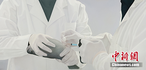 中新网北京9月5日电(宋宇晟)今日,“梁浩-停在眉毛上的时间”和“米杰-你快乐我忧伤”两个展览在北京Hi艺术中心开幕。两位艺术家的艺术作品均以绘画的形式呈现,但又具有各自的特点:梁浩的作品用写实的手法表现自己对不同问题的探索,而米杰则通过画作反复地关照自己内心。