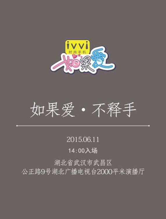 由ivvi时尚手机携湖北卫视共同打造的真人秀恋爱节目《如果爱》。节目中,拥有超高人气且惹眼明星阵容的加入令节目在还未开播之际,就受到了外界的极大关注。而在2015年6月11日,ivvi时尚手机也将携手《如果爱》众明星阵容在武汉广电大厅为大家带来一场空前的联合发布会。届时,将会有一百多家知名媒体见证这一盛会,腾讯视频将同步直播,搜狐,网易,爱奇艺,优酷等会进行深入报道,有望共同开启一个恋爱新纪元。