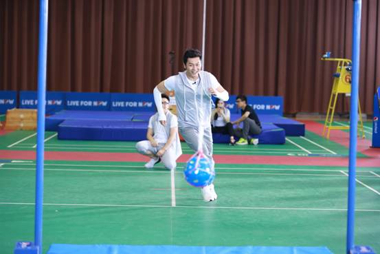在游戏关卡阶段,联盟家族就感受到了来自节目组“深深的恶意”。足球用头顶、兵乓球用双节棍打、跳高要趴着墙跳……每一项常规的体育项目在这里,挑战难度都被拔高。作为能力者“大黑牛”李晨首当其冲以身作则,率先在第一关尝试挑战 “摇晃的足球”,却因没做防护直接高速冲向软垫后险擦伤手臂,面对突如其来的受伤插曲,李晨帅气摆手:没事儿!不过还是获得冰冰亲自帮他贴创可贴,幸福来得太突然!