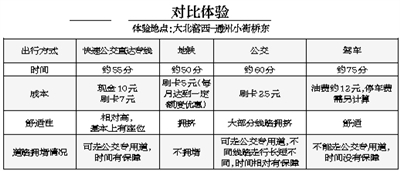 从几种出行方式上看,快速公交直达专线车辆很新,乘坐舒适,有座位,时间上也比较有保障,略快于普通公交。公交车价格便宜,但需要排队,且很难找到座位。地铁时间上最有保证,但较为拥挤。私家车时间上没有保障。从舒适性和价格上看,新兴出行方式快速公交直达专线要明显好于私家车等。