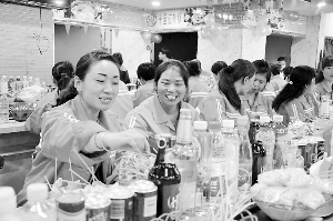 周玉萍请200多名环卫工人吃火锅。本报记者陆小乐摄