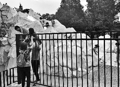 然而记者在现场看到,虽然此时已经过了游玩时间,但仍有不少家长带着孩子“另辟蹊径”,或让孩子从栏杆缝隙钻入,或举着孩子从围栏上方翻越,对开放时间的规定熟视无睹。而记者在现场也并没有看到有公园的工作人员进行阻拦。
