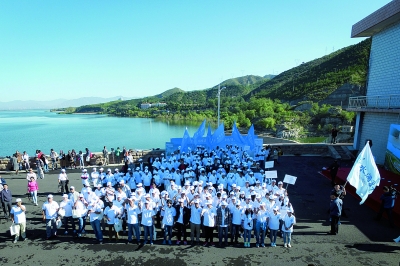 千龙-法晚联合报道 9月25日上午,水利部、北京市水务局等单位组织的“关爱山川河流·保护江河源头”志愿服务暨公益宣传活动,在永定河官厅水库大坝上举行启动仪式。来自各方的近200名志愿者,现场发表倡议,在横幅上签名,并现场清理水库周边的垃圾,从自身做起,希望树立大家的环保理念。