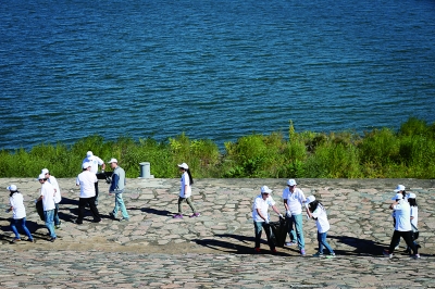 在活动现场,志愿者引导组织参加启动仪式的现场人员在“关爱山川河流·保护江河源头”横幅上签名,从自身做起,留下保护江河源头的社会倡议与庄重承诺。随后,志愿者们自发拿起工具,沿着水库边,清理垃圾。