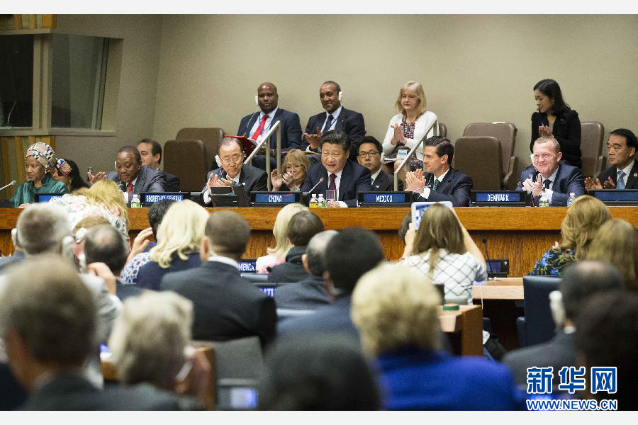9月27日,国家主席习近平在纽约联合国总部出席并主持全球妇女峰会。习近平在开幕式上发表题为《促进妇女全面发展 共建共享美好世界》的重要讲话。(新华社记者黄敬文 摄)