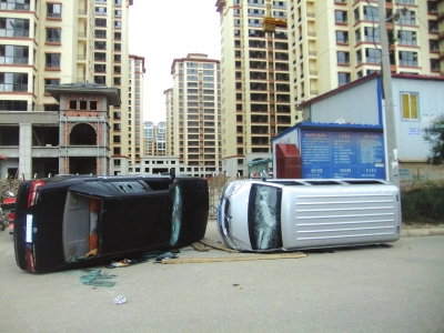 中国甘肃网9月30日讯 据兰州晚报报道(首席记者 孙建荣 文/图) 9月28日下午,定西银宇通钢材经销部两位人员,在定西市新区一中和教育世家1—8号楼项目部催讨欠款时,遭遇不明身份人员殴打,两辆车被掀翻砸毁,两人腿部受伤住进医院。