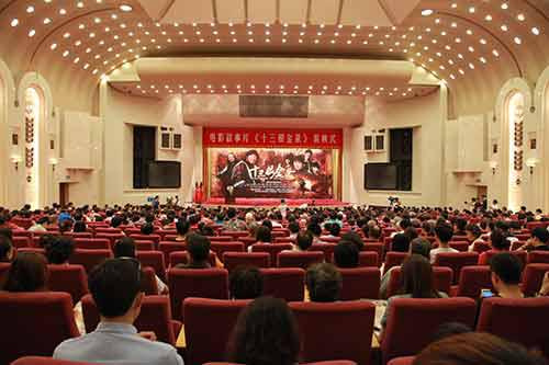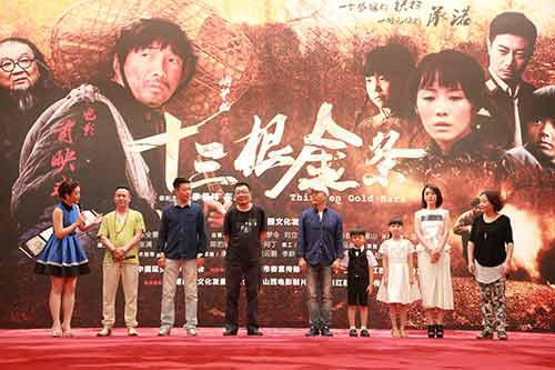 5月31日,电影故事片《十三根金条》在人民大会堂隆重首映。参加首映式的主要领导有:中国延安精神研究会常务副会长兼秘书长苏希胜、原广电总局党组书记现人大文教主任委员李树文,国家新闻出版广电总局电影局局长张宏森、山东新闻出版广电局局长聂宏刚、山东淄博市政协主席、宣传部部长郭立民、淄博市副市长张庆盈。同时,还有幸请到原中央党史研究室常务副主任陈威、原中央文献研究室副主任杨胜群、原商务部副部长现中国商务广告协会会长周可仁、原山西省副省长,现任民盟中央副主席张平、原全国工商联副主席孙晓华等一部分老同志和中央党校以及最高人民检察院的领导。
