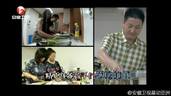 终于,在大家饱食一顿之后,谜底也即将揭开。餐桌旁的电视机出现了学员们父母的画面,隔着山河万里,爸爸妈妈们即希望孩子们努力成才,又希望孩子们慢点长大能多陪在自己身边,也有拉上家中亲戚一起为孩子鼓劲加油的。
