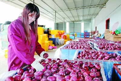 10月9日,礼县良友果业合作社的技术员验收准备存入果蔬气调库的苹果。礼县为了应对市场风险,建成果蔬气调库15座,贮量达5.3万吨,有效解决了果品贮藏问题。