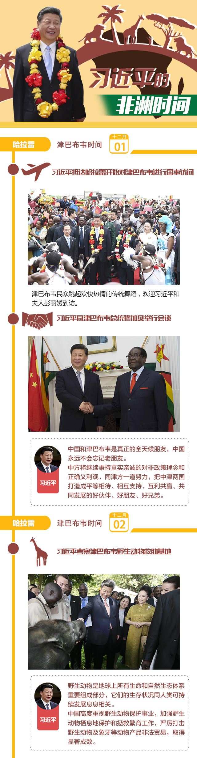 习近平的非洲时间 2015-12-07 10:21 中国政府网 我要评论0 新华网北京12月7日电 12月1日至5日,国家主席习近平对津巴布韦和南非进行国事访问,并赴南非约翰内斯堡和南非总统祖马共同主持中非合作论坛峰会。新华社记者带你全览习主席的非洲时间。 微笑 流汗 难过 羡慕 愤怒 流泪 相关阅读 关键词: 习近平 非洲 时间 责任编辑:紫萱 复制网址 打印 收藏 0