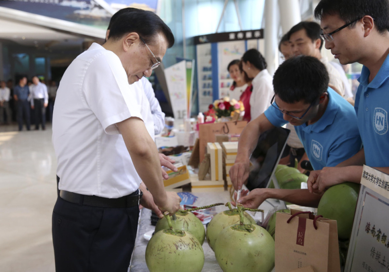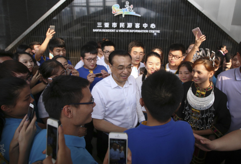 建设国际旅游岛是海南经济社会发展必须做好的一篇大文章。李克强来到三亚市民游客中心,了解旅游业发展情况,并登录微信体验运用大数据为游客提供咨询等服务。看到一些包括大学生在内的年轻人正在展示用当地农产品和特色原材料制作的旅游纪念品,李克强称赞他们富有创意,小商品可以打造未来的大希望。他说,现代旅游业是融合一二三产业的综合性产业,这是一种新经济,不仅促进农产品消费和升值,也带动更多适应群众需要的工业品开发。他强调,发展新经济、培育新动能是遵循新发展理念、适应经济发展新常态的必然选择,也可以为改造提升传统动能创造必要和有利条件。现在我们每年有700多万大学生和500多万中职学生毕业,要营造鼓励创业创新、宽容失败的环境,催生更多新产业、新业态,创造大量适合他们的就业岗位,促进新经济健康发展。
