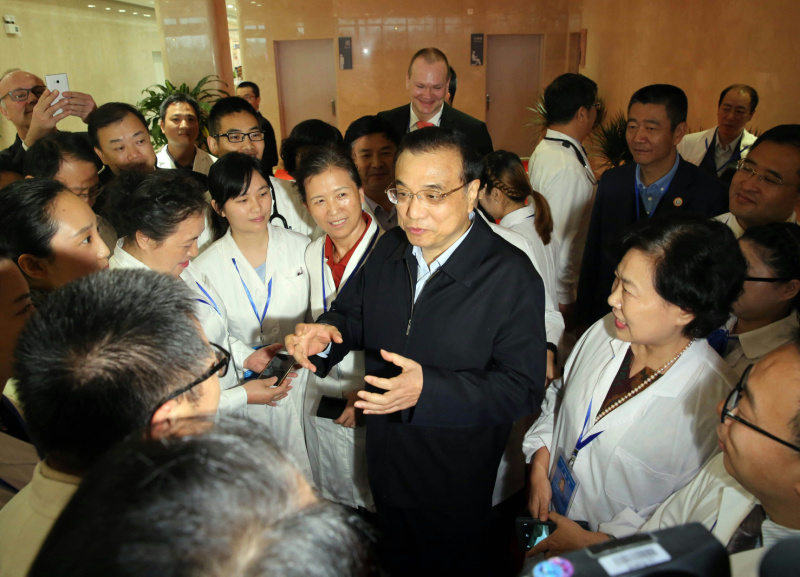 博鳌乐城国际医疗旅游先行区是经国务院批准设立,吸引不少国内外知名医疗机构前来投资。李克强听取规划和建设情况汇报,到工地看望施工人员,得知这里吸纳大量农民工就业,收入明显提高,他非常高兴。在已建成的成美国际医学中心,中国医生正同德国专家为中国患者进行远程会诊,李克强同他们互动交流,称赞“医疗+互联网”使天涯变咫尺,要广泛借鉴国际经验,让群众享受到更高水平服务。听到负责人介绍,这里把医疗、养生、保健融为一体。李克强说,这种产业融合发展不仅使传统医疗卫生上水平,而且会推动形成新业态,这是大产业、大市场,要推进医保全国联网,加快解决老年人异地住院报销难题,这有利于发展医养结合的新经济,更好惠及民生。他强调,要落实好深化医改的各项措施,坚决破除“鸡生蛋、蛋生鸡”的审批转圈,打掉阻碍民办医院发展、束缚医生多点执业等“土政策”,更好满足人民群众健康需求。