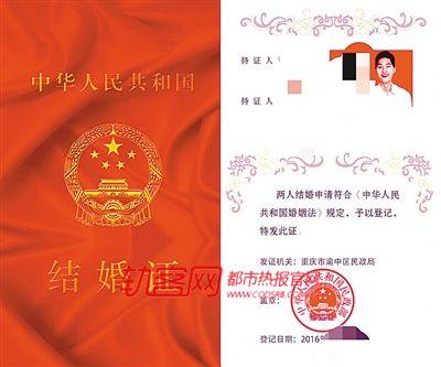 韩剧《太阳的后裔》火遍全国,男主角宋仲基一度成为热门话题,甚至成为众多女性心目中的“新任老公”,他的白衬衫登记照也被网友恶搞,大家ps上自己的头像与宋仲基领“结婚证照”。26岁的李小姐也效仿ps上自己头像,并在网络上晒出“结婚证”,可结果并未娱乐他人,反而激怒了父亲……