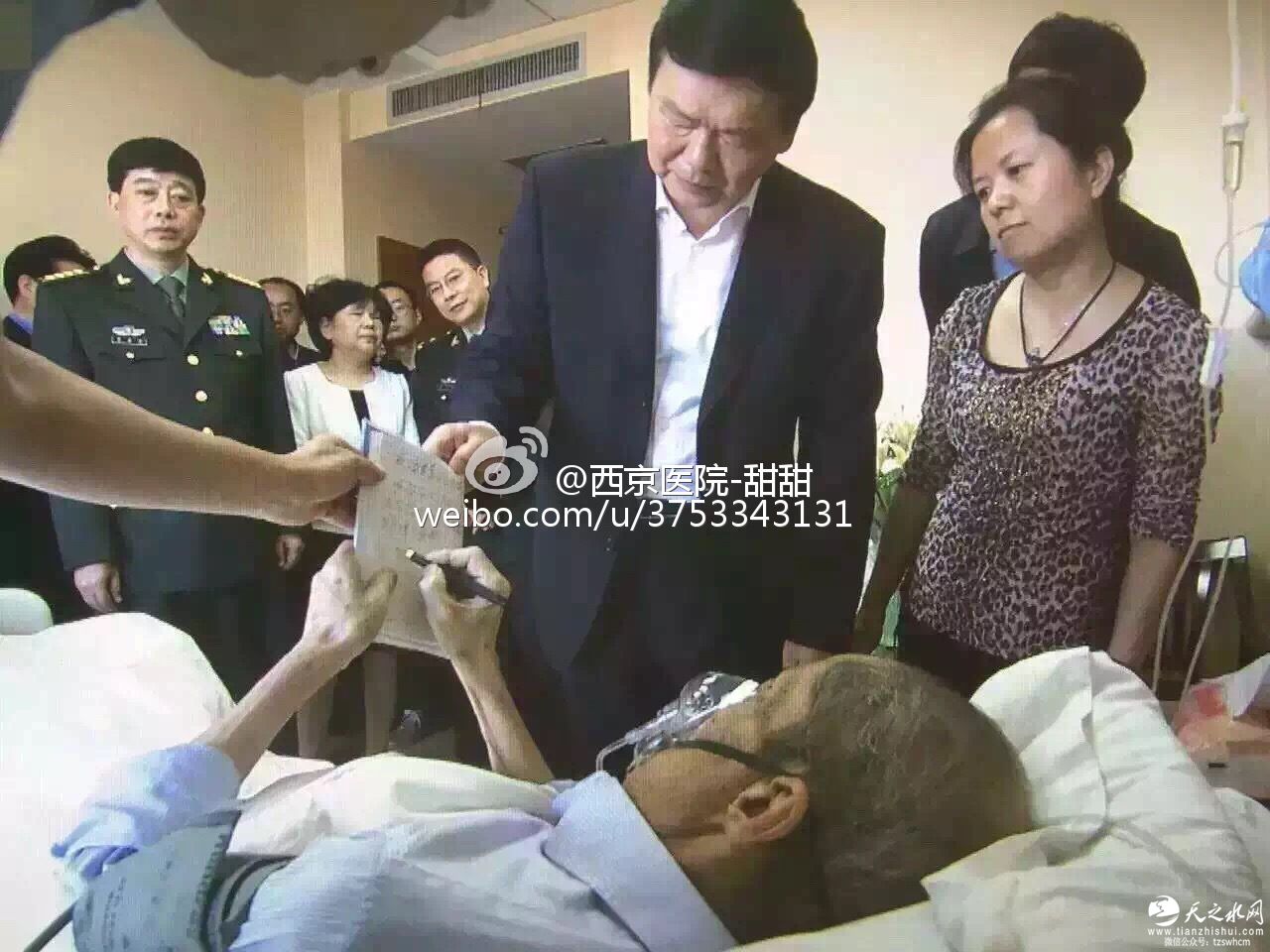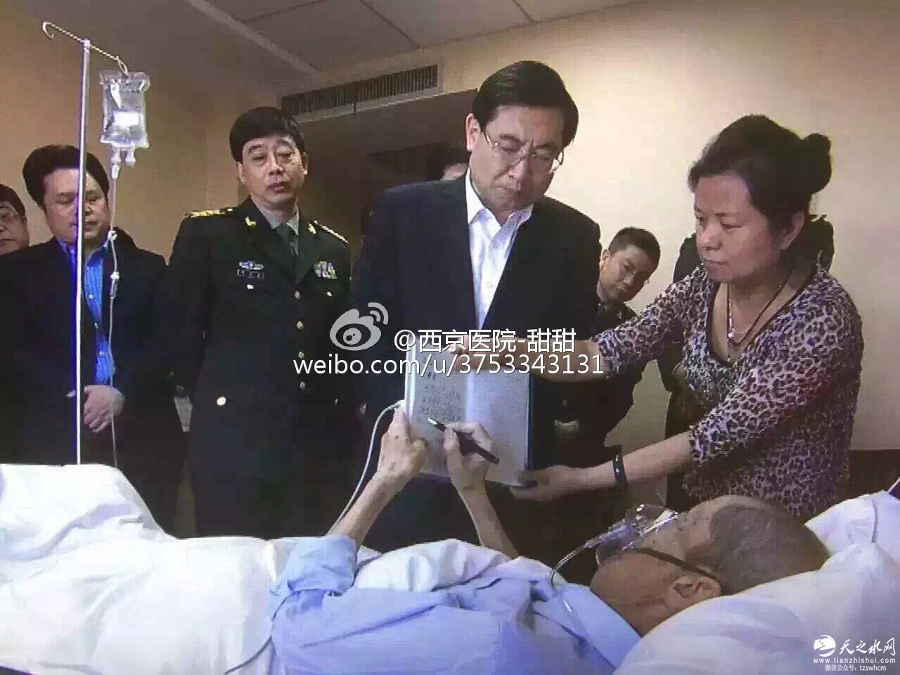 在我院,著名作家陈忠实弥留之际,仍然心系陕西发展,写寄语给书记省长。“陕西再大发展……”陈忠实先生临终前两天不能说话,躺在病床上给省委书记娄勤俭写道:“感谢娄书记关爱,祝贺你任陕西书记,一定会给陕西乃至全国发展作出伟大贡献。再次谢意”