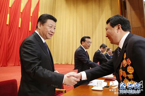 4月28日,2015年庆祝“五一”国际劳动节暨表彰全国劳动模范和先进工作者大会在北京人民大会堂隆重举行。这是习近平等党和国家领导人向全国劳动模范和先进工作者颁发荣誉证书。新华社记者 鞠鹏 摄
