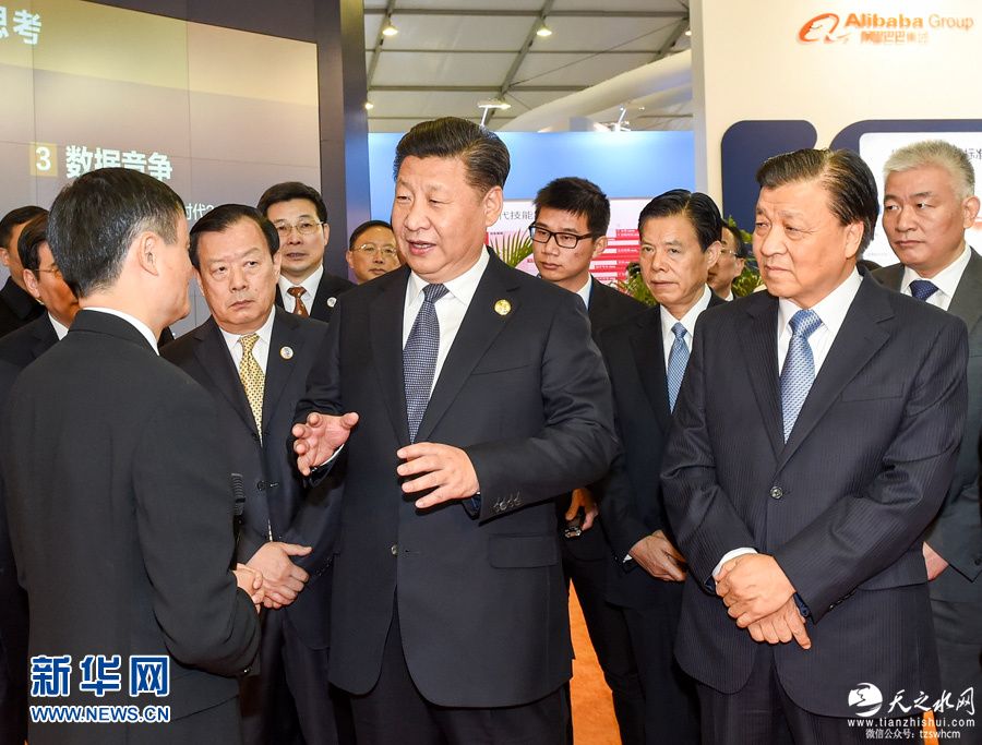 图为:2015年12月16日,中共中央总书记、国家主席习近平在浙江省乌镇视察“互联网之光”博览会。