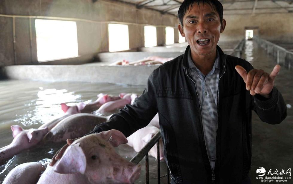 主人抚摸着生猪和它们诀别。