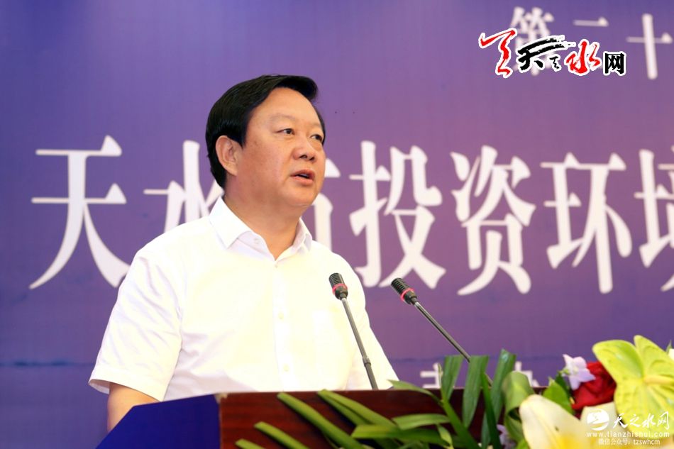杨维俊在致辞中代表天水市四大组织向参加会议和签约仪式的各位来宾表示欢迎,并介绍了我市的基本市情和经济社会发展情况。他说,当前,天水正抢抓国家和省上实施“一带一路”战略、推进精准脱贫攻坚、建设关中—天水经济区和经济、文化、生态三大战略平台等重大机遇,努力建设丝绸之路经济带历史文化名城,将为外来投资提供十分有利的环境,也为深化交流合作、加快改革发展搭建了更加广阔的战略平台,热忱欢迎有识之士来天水观光旅游、洽谈项目、投资兴业。杨维俊表示,天水将以更加优惠的政策、更加优良的环境、更加优质的服务,着力为项目落地实施、企业发展壮大创造良好的条件,在项目用地、基础设施、筹资融资、报建审批等方面全力提供保障,确保企业招得来、留得住,项目落得下、发展好,努力推动地企互利共赢、共同发展。