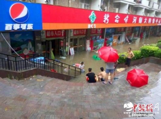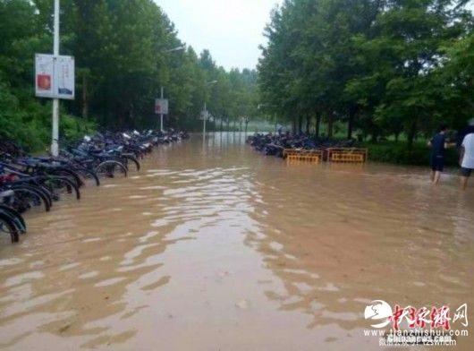 新乡市人民政府新闻办公室9日消息称,8日夜间开始该市出现大暴雨,雨量突破历史极值。从9日凌晨起截至早上七点,共有61个乡镇雨量超过100毫米。强降雨主要集中在新乡市区及辉县、卫辉、新乡县。最大降雨量出现在新乡观测站,达313.3毫米,已经突破历史极值。图为河南师范大学校园内路段积水严重。 周小云 摄