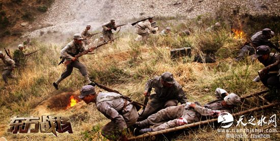平型关大捷不仅在中国近代抗日史中具有关键的里程碑作用,即使在和平年代的今天,仍具有重要的史学价值。《东方战场》以罕见全景高空视角的拍摄方式重现了整个平型关关口的险峻以及战线的长度,在战役爆发之时,炮火和硝烟弥漫了整个平型关。士气高涨的八路军战士们,面对装备精良的日军没有丝毫退缩,子弹打光了,就用刀去搏杀,刀挥不动了,就用拳头去战斗,连拳头都挥不动了,那就用身躯来做防线……无论是与敌军争夺老爷庙的冲锋战士,还是身先士卒的六八七团副团长田守尧,亦或是身负重伤拿起手雷与敌军将领同归于尽的普通战士,都在这场战斗中展现了他们为家、为国,为民族争取胜利的铮铮信念和不屈身影,此役景象之惨烈也令人动容不已。