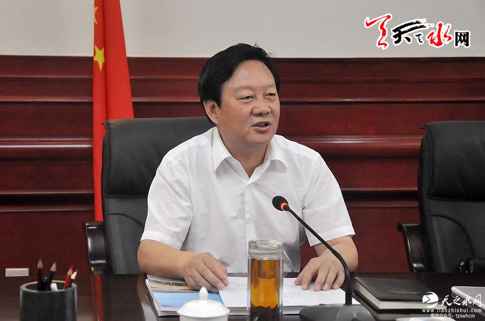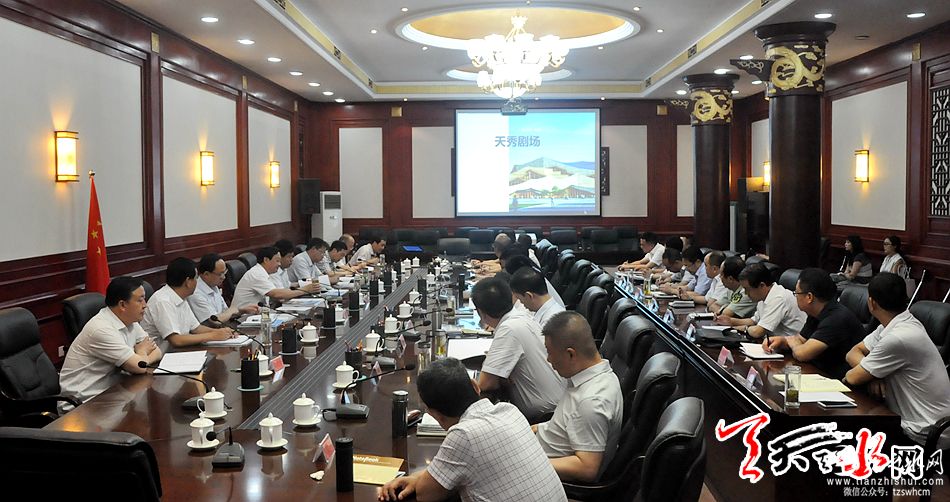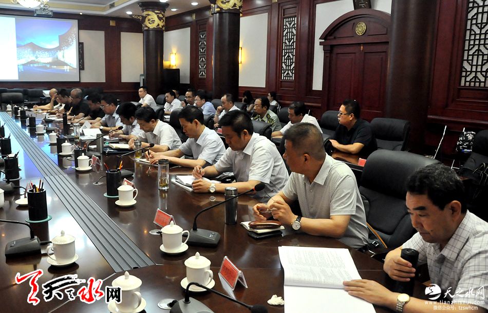 ▲市委副书记、市长杨维俊主持会议并听取《天水天秀》剧场和麦积山游客服务中心项目设计方案汇报