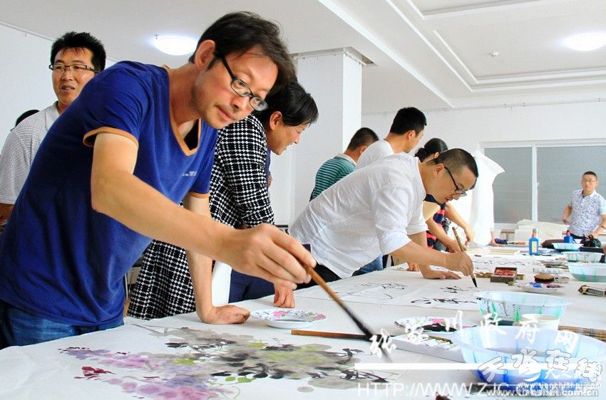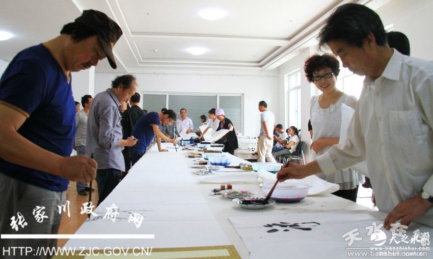 来自两市六县区的10位书画名家在张家川县文化馆多功能厅开展书画交流笔会,现场挥毫泼墨,创作了百余幅书画作品。由市文化馆馆长李靖、张家川县书画家协会副主席朱山茗等5位书画家现场共同创作的两幅近10米长书画折页被县文化馆收藏。